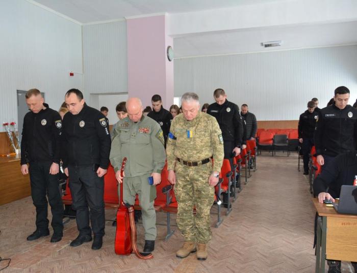 У творчій частині вечора Володимир Щеглов виконав свої авторські патріотичні пісні, які виховують у молоді любов до рідного краю, до своєї рідної землі, а курсанти 2 курсу презентували тематичну концертну програму: віршовані рядки, танці та патріотичні пісні, народжені війною.