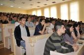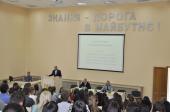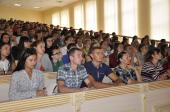 Вітаючи першокурсників з початком навчального року, ректор зазначив, що впевнений: «Усі, хто присутні на зустрічі, обрали цей університет не випадково. Тут працює висококваліфікований науково-педагогічний колектив, а Харків за кількістю навчальних закладів, історією та традиціями є одним з найпотужніших студентських міст України». Ректор побажав юнакам і дівчатам використовувати усі можливості, всі ресурси університету для оволодіння знаннями в обраній професії. Університет пишається своїми випускниками, серед яких багато відомих і шанованих у суспільстві людей. «Цінуйте те, що маєте, пишайтеся тим, що навчаєтесь саме тут і дорожіть дипломом, який отримаєте», – зазначив Валерій Сокуренко. Головний девіз молоді, на його думку, «Ні – байдужості!». В університеті створено всі умови для того, щоб молода людина змогла розкрити свій потенціал та реалізуватися як особистість. Це і чудовий колектив викладачів, методистів, і хороші аудиторії, і одна з найкращих в Україні бібліотека, і потужна спортивна база, і сучасні умови проживання. Ректор запевнив присутніх, що жодне питання чи проблема, пов’язані з навчанням або побутом, не залишаться поза увагою керівництва та працівників факультету. Двері приймальні ректора також відкриті для всіх, хто налаштований на конструктивну розмову та співпрацю.
