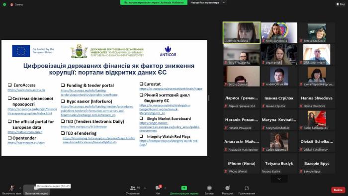 У заході взяли участь понад 40 учасників: науковці, науково-педагогічні працівники, вчителі, працівники органів державної влади, учасники професійних і громадських організацій (об’єднань). Учасники обговорили актуальні питання: співробітництва України з ЄС у сфері запобігання й протидії корупції; інституціональні інновації у сфері протидії корупції: досвід ЄС та висновки для України; ефективність застосування механізмів антикорупційного контролю в умовах воєнного стану в Україні; питання оцінки ефективності та прозорості публічних закупівель у країнах ЄС; корупції як основної причини розвитку тіньової економіки; антикорупційну політику в міжнародному бізнесі; можливості моніторингу корупційних ризиків на основі відкритих даних; протидію корупції у світлі повоєнного відновлення України, політико-правові передумови корупції в органах державної влади; проблемні аспекти запобігання і протидії корупції в Україні на сучасному етапі.