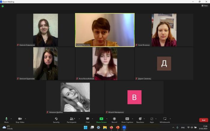 З нагоди Дня пам’яті Героїв Небесної Сотні та роковин широкомасштабного вторгнення Російської Федерації в Україну доцентка кафедри соціально-економічних дисциплін Сумської філії ХНУВС Світлана Петровська провела в режимі онлайн кураторську виховну годину зі студентами четвертого курсу спеціальності «Право».