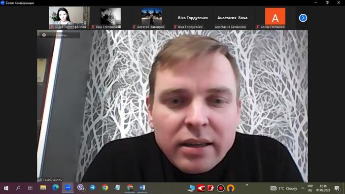 Тематика практичного заняття було присвячена питанням вчинення кримінальних правопорушень проти життя та здоров’я особи. Антон Санкін розповів студентам про свою професійну діяльність - він був слідчим, згодом став адвокатом, - навів конкретні приклади зі своєї практики. За тематикою заняття адвокат підготував для студентів завдання, що складалися з питань щодо надання кваліфікації ситуаціям. Студенти надавали свої варіанти відповідей та дискутували. Заняття пройшло активно, здобувачі ставили багато запитань, отримали практичні поради щодо застосування теоретичних знань у майбутній професійній діяльності. Наприкінці зустрічі Юлія Митрофанова запросила Антона Санкіна до участі у наступних заняттях.