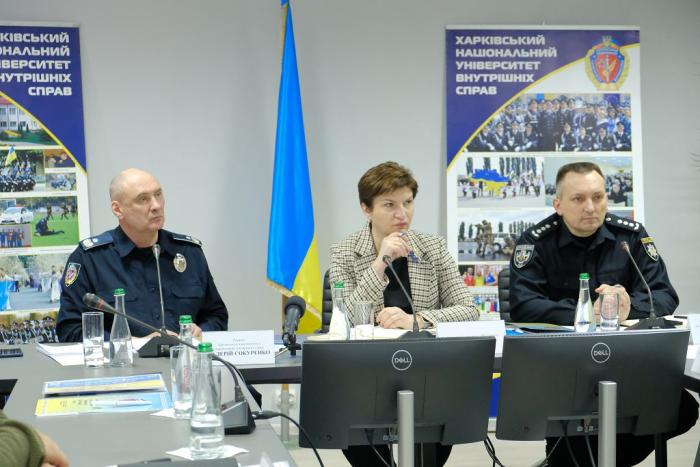 На нараді обговорювалися нагальні питання й виклики, що стоять перед органами системи МВС у зв’язку з воєнними діями, та особливості адаптації підготовки фахівців системи МВС до потреб практики та реалій сьогодення.