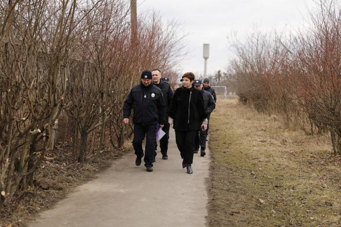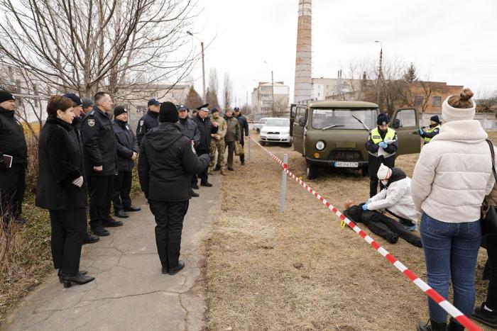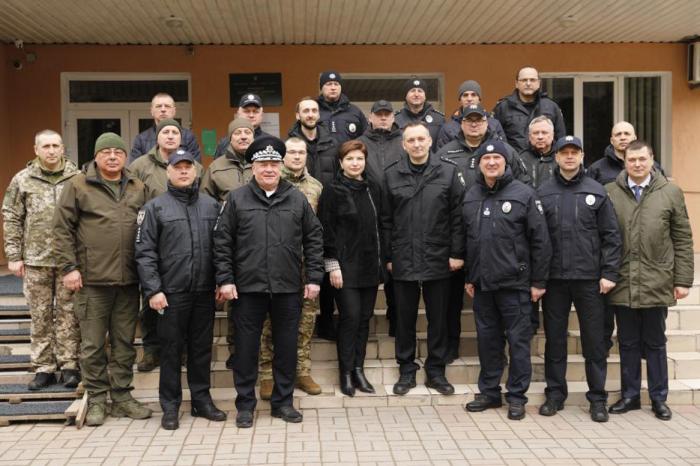 Державний секретар МВС разом з учасниками семінару-наради оглянула навчальні полігони, де проходять практичні заняття курсанти: місце масового поховання цивільних осіб, масового розстрілу цивільних громадян, колона розстріляних авто, місце влучання снаряду ракетної артилерії РСЗВ «Ураган», приміщення катівні, місце залишків боєприпасів та вибухових предметів, місце руйнування об’єкту цивільної інфраструктури, опорний пункт поліції (фортифікаційна споруда) із демонстрацією дій працівників поліції на блокпосту.