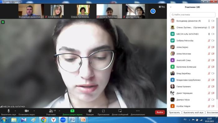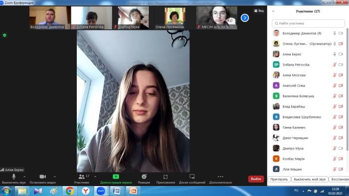 Екскурс в історичні витоки свята 8 березня у доповіді здійснила студентка 1 курсу спеціальності «Право» Аліна Берко. Вона розповіла студентам як про першочерговий зміст, так і про зміну сенсів, котрі були в нього вкладені у період радянської доби. Також присутні дізналися про кроки на рівні міжнародних організацій, зокрема ООН, щодо привернення уваги до питання захисту прав жінок у світі.