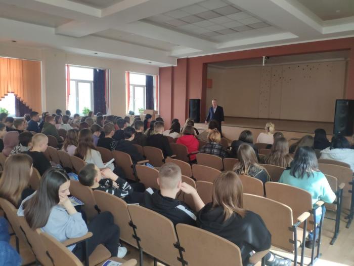 Представники Харківського національного університету внутрішніх справ – помічник ректора Віктор Слиш, начальниця відділу рекрутингу та організації профорієнтаційної роботи Олена Чорноус, фахівець відділу Ігор Овчаренко провели профорієнтаційну зустріч із старшокласниками КЗ «Погребищенський ліцей №1» Погребищенської міської ради Вінницького району Вінницької області.