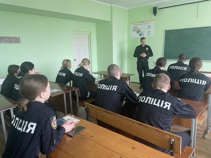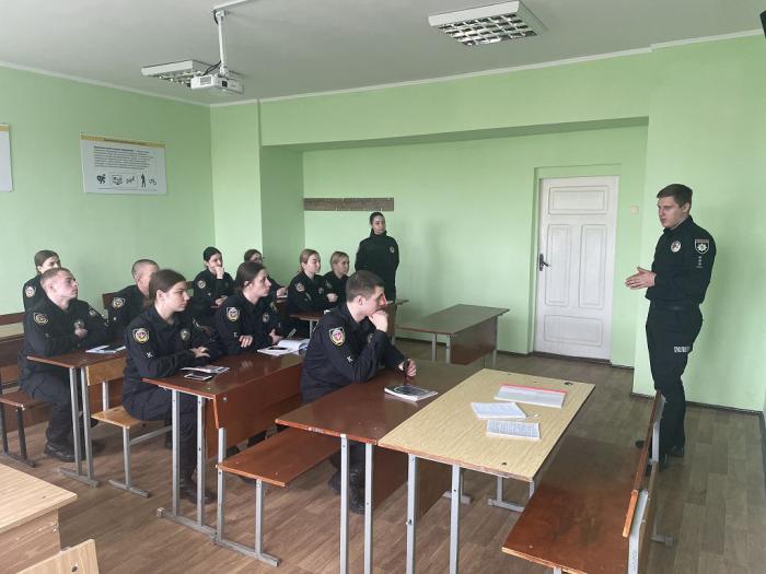 Під час зустрічі курсанти разом із практичним працівником поліції визначили порядок проведення огляду щодо стану алкогольного сп’яніння поліцейським і оформлення результатів, розглянули підстави вилучення посвідчення водія та тимчасового затримання транспортних засобів, а також обговорили проблемні питання, з якими стикається поліцейський під час оформлення матеріалів про адміністративні правопорушення у сфері забезпечення безпеки дорожнього руху.