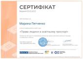 Доцентка кафедри соціальних та економічних дисциплін факультету № 2 кандидатка економічних наук Марина Петченко успішно пройшла онлайн-курс «Права людини в освітньому просторі» на платформі Prometheus.