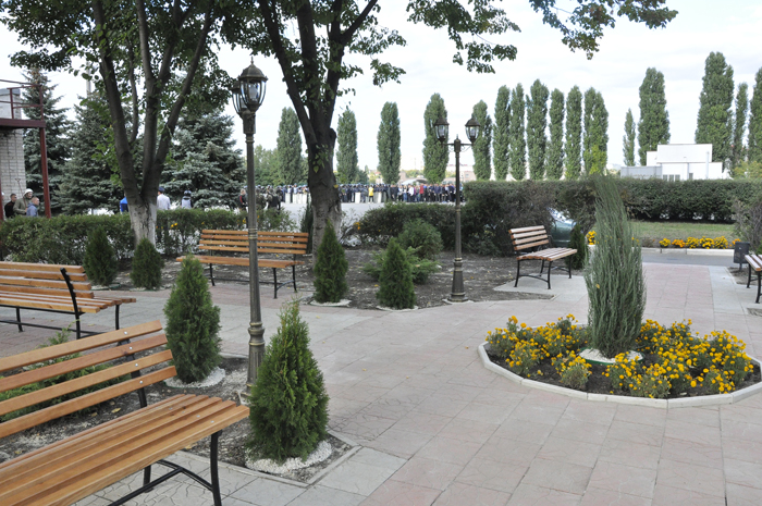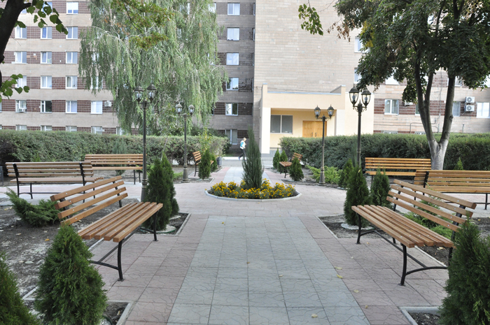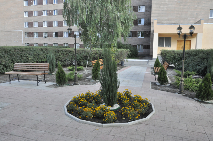 Територія Харківського національного університету внутрішніх справ постійно упорядковується. Нещодавно облаштовано нове місце для відпочинку навпроти будівлі адміністративно-побутового корпусу. Його територію вимощено тротуарною плиткою, встановлено лави, висаджено кущі туї, ялівцю, чорнобривці.