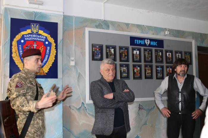 Курсанти поспілкувалися з митцями та дізналися, як народжується велике українське кіно, а також прослухали бардівські пісні, вірші від молодшого Лінартовича. У доробку акторів чимало ролей на патріотичну, зокрема історичну тематику, а також про війну на Донбасі. Дмитру Лінартовичу – виконавцю головної ролі у фільмі Михайла Іллєнка «ТойХтоПройшовКрізьВогонь» – довелося пройти крізь вогонь і пекло справжньої війни. Дмитро, який наразі є військовослужбовцем Збройних Сил України, зазнав тяжкого поранення в бою під Соледаром на Донеччині. «Нас ніколи не зламати! Ми перемагаємо!» – ці слова, які вже стали крилатими, Дмитро записав у відеоролику відразу після поранення. Це був посил до українців про те, що ми незламні.