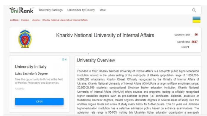 UniRank University Ranking 2023 – визначає популярність і відвідуваність сайтів 14000 університетів світу, з яких 181 – український. Обчислюється за формулою на основі даних наступних веб-метрик: