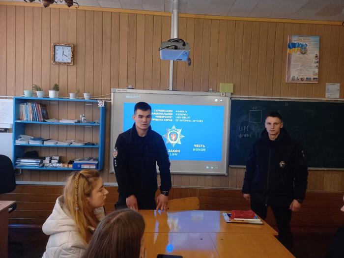 Під час зустрічей майбутніх випускників ознайомили з правилами вступу, особливостями навчання, факультетами та спеціальностями, за якими здійснюється підготовка фахівців Харківському поліцейському виші.
