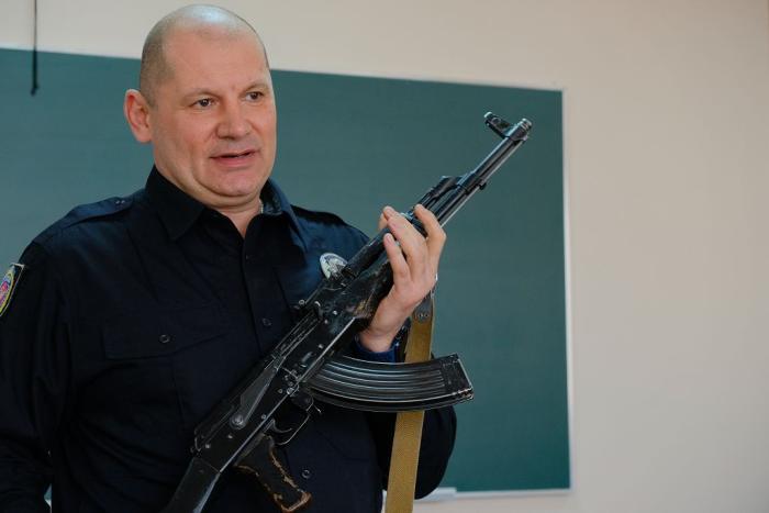 Декан факультету №2 ХНУВС кандидат юридичних наук, полковник поліції Ігор Назаренко в межах військово-патріотичного виховання курсантів провів тренінгове заняття за темою «Неповне розбирання та збирання автомату АКМ» з командирами навчальних груп факультету.