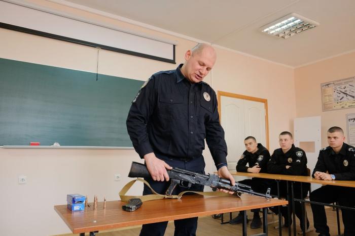 Під час заняття курсанти вивчали прийоми і правила у поводженні зі зброєю, а також було проведено неповне розбирання та збирання автомату.