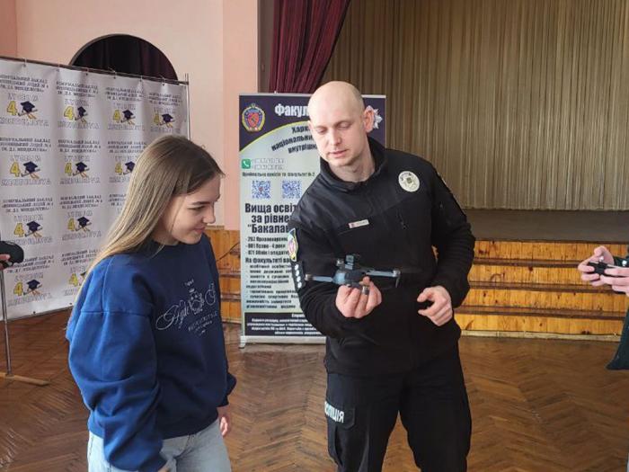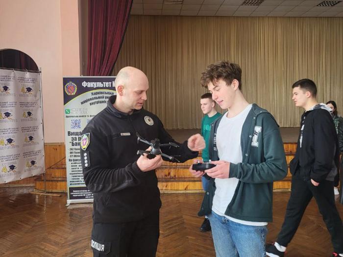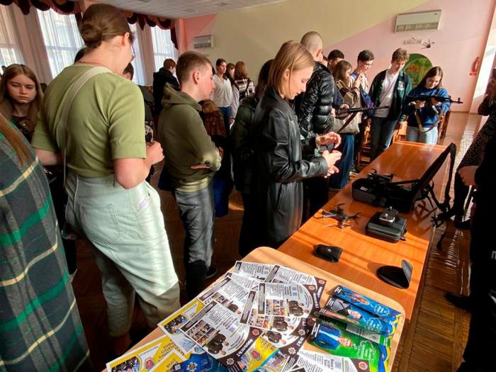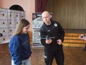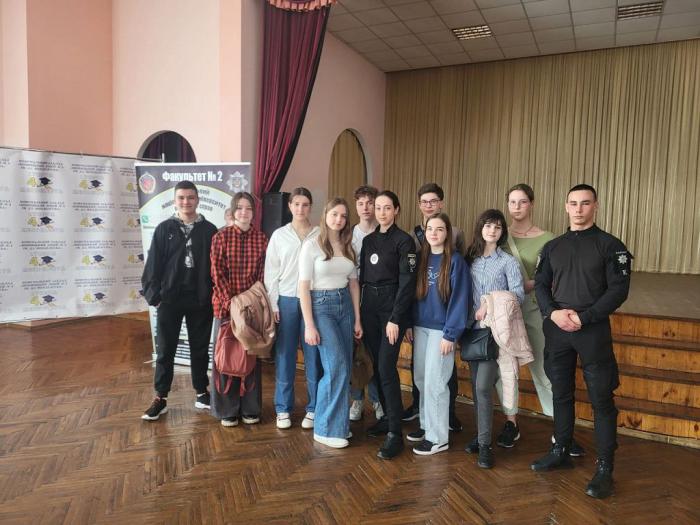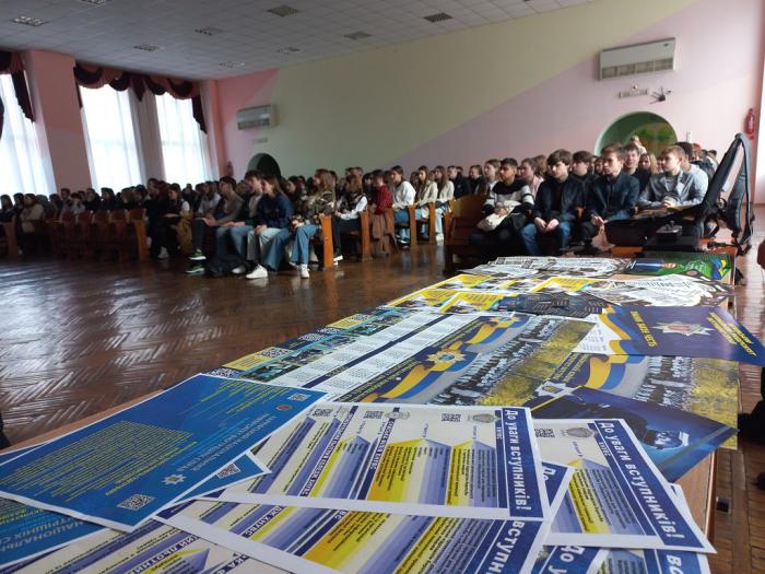 Заступник декана з навчально-методичної роботи Сергій Гіренко разом із курсантами 1-3-х курсів, старшим викладачем кафедри тактичної та спеціальної фізичної підготовки факультету № 3 Олександром Скляром провели зустріч з учнями, які замислюються про свідомий вибір майбутньої професії.