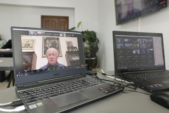 Із доповіддю «Забезпечення фінансової безпеки держави в умовах воєнного стану» виступив академік Національної академії правових наук України, доктор юридичних наук, професор Олександр Бандурка.