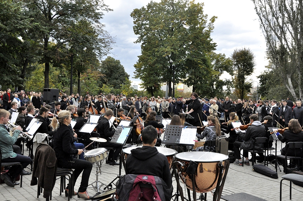 Після урочистого відкриття розпочався святковий концерт за участю симфонічного оркестру, хору, студентів-лауреатів Міжнародних конкурсів та фестивалів Харківського національного університету мистецтв імені І. П. Котляревського.