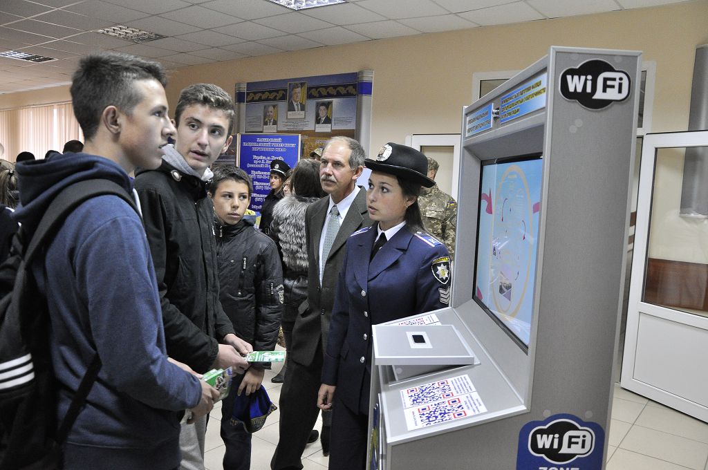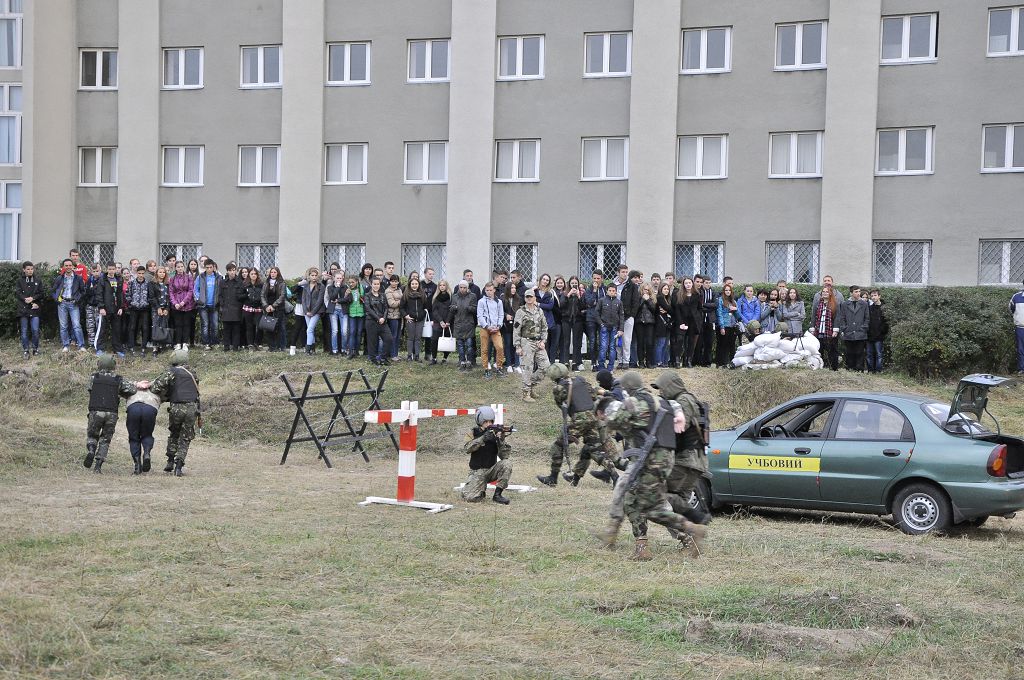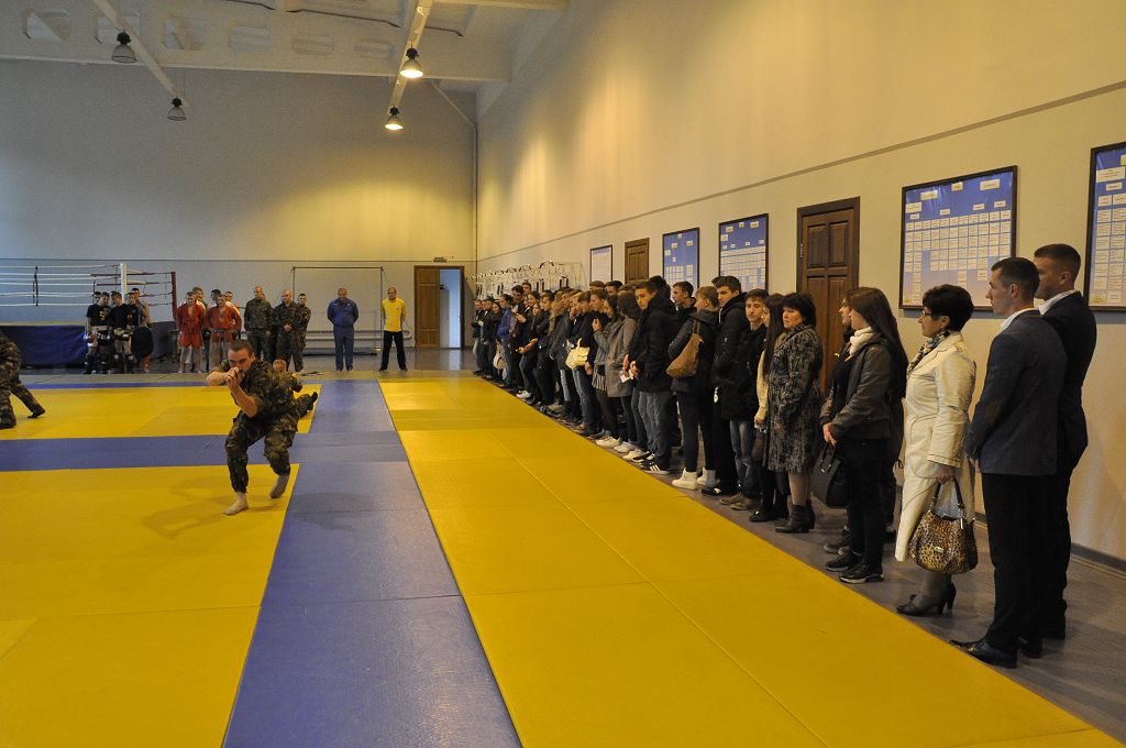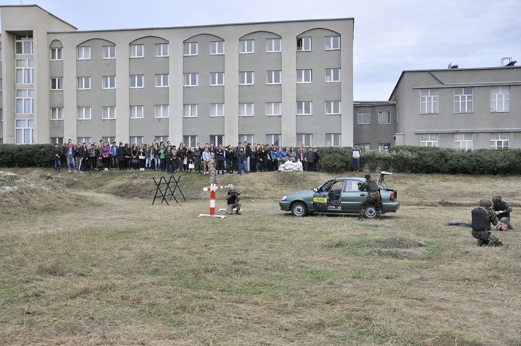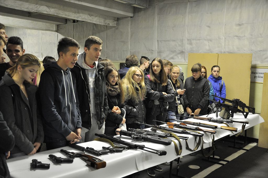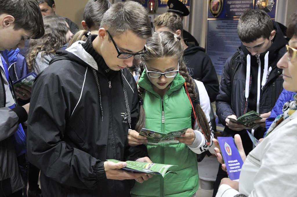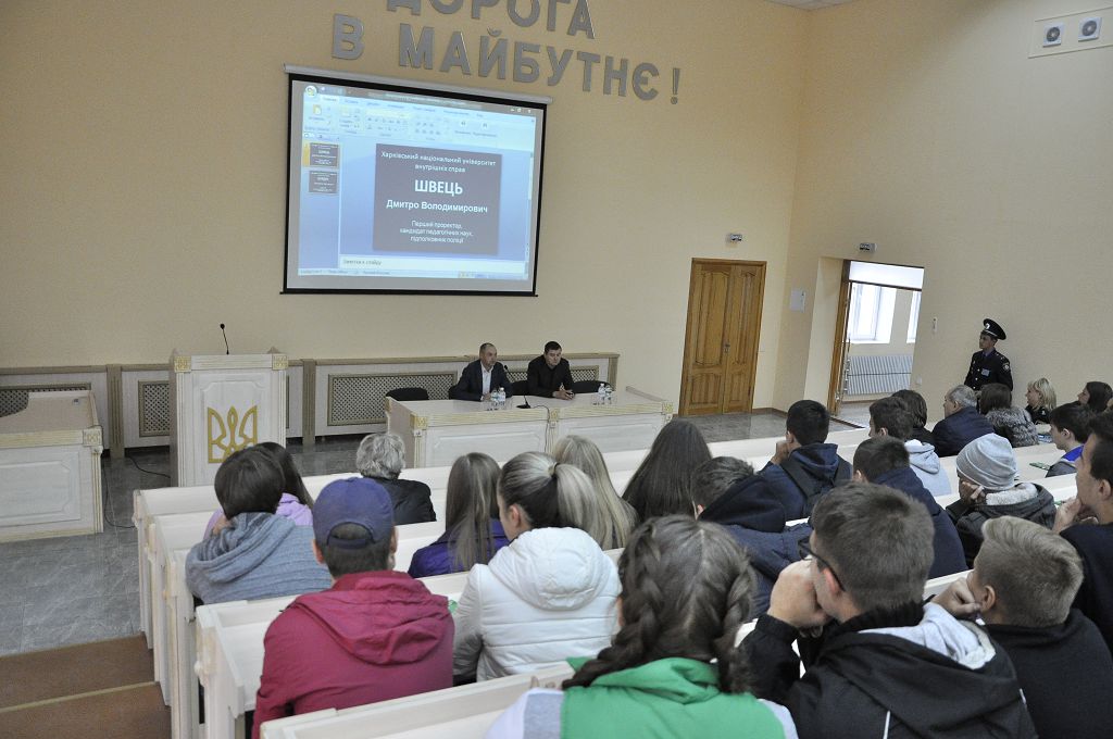 Після спілкування гості вишу переглянули фільм про навчальний заклад, потім розпочалася екскурсія територією університету. Юнакам та дівчатам презентували кафедру вогневої підготовки, виставку зброї, тир, спортивну залу, навчальні полігони, навчальний центр протидії кіберзлочинності та моніторингу кіберпростору.