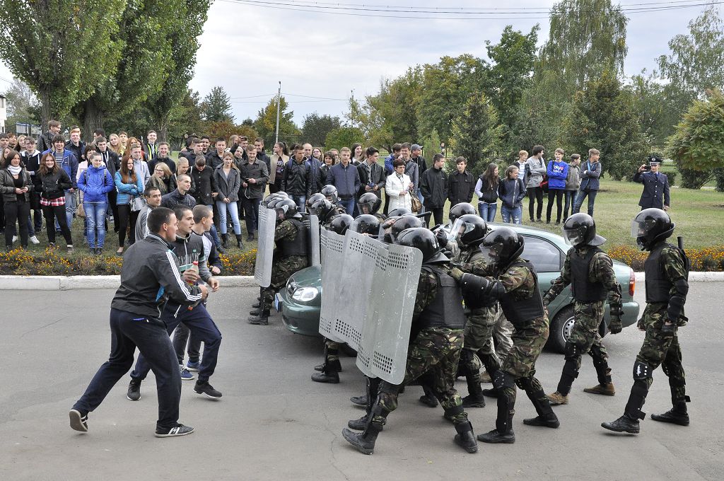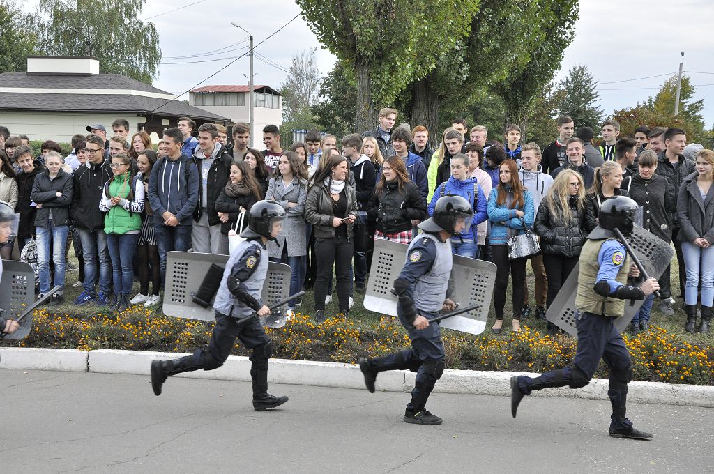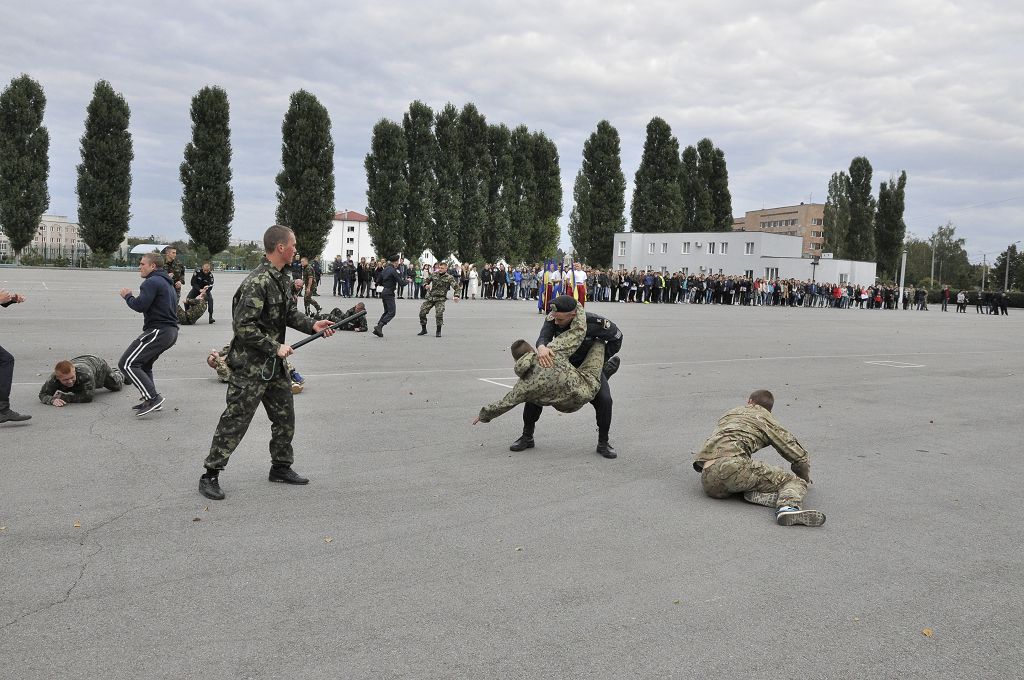 На великому плацу відбувся виступ ансамблю барабанщиць та колективу художньої самодіяльності університету, також було продемонстровано дії працівників поліції під час охорони адміністративних будівель та відбиття нападу.
