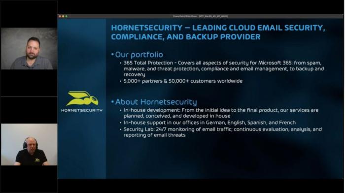 На вебінарі обговорювалися такі теми: що таке розширений ATP захист від загроз; навіщо потрібен розчин ATP і від чого він захищає; як Hornet справляється з ATP; що нового в ATP від Hornetsecurity; технічна демонстрація ATP.