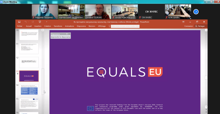Друга частина лекції була присвячена міжнародним науковим здобуткам ХНУВС. Учасники ознайомилися з міжнародними проєктами та їх результатами, що реалізуються в університеті: проєкти програми Горизонт2020 «Європейське регіональне партнерство для ґендерної рівності в епоху цифрових технологій» (EQUALS-EU), «Взаємодія мережі розвідки й безпеки із суб’єктами промисловості та науки» (NOTIONES) та програми Еразмус+ за напрямом Жан Моне «Світлофор політики ЄС: ґендер, права, міграція та цифровізація» (GeRiMiD).