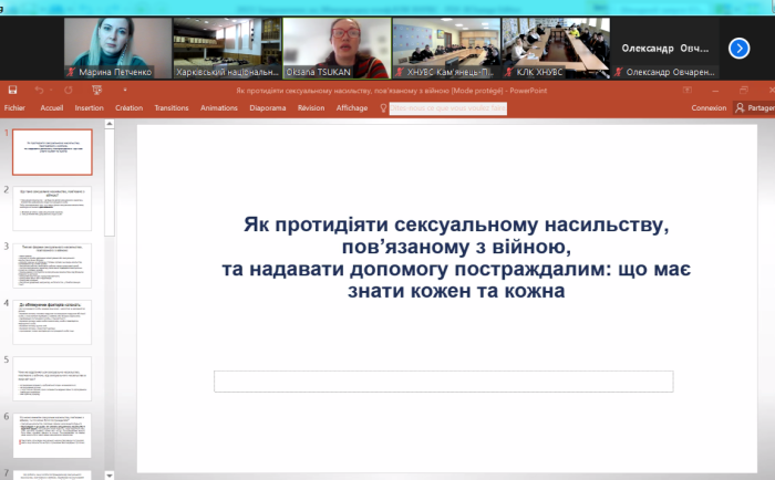Під час лекції здобувачі вищої освіти ознайомилися з поняттям «сексуального насильства, пов'язаного з війною», алгоритмом дій в такій ситуації, доказами цих злочинів та як їх збирати, основними засадами спілкування з особою, яка постраждала від насильства, пов’язаного з війною.