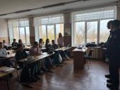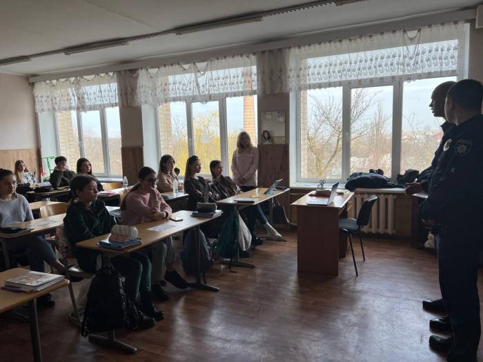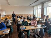 Старша викладачка кафедри іноземних мов факультету №4 ХНУВС Лариса Сазанова та курсанти першого курсу Олексій Пашалик та Ілля Гайдаєнко провели профорієнтаційну бесіду з учнями 10 класу Кам’янець-Подільського ліцею №7 Кам'янець-Подільської міської ради Хмельницької області. Вони ознайомили ліцеїстів із правилами прийому до університету, розповіли за якими спеціальностями здійснюється підготовка кадрів у закладах вищої освіти із специфічними умовами навчання. Молодь подивилася відеоролик про факультети вишу, поспілкувалася з курсантами та отримала повну інформацію про факультети №1 та №4, що розташовані в м. Кам’янець-Подільський. Представники університету поспілкувалися з керівництвом і вчителями ліцею, передали для учнів та їхніх батьків профорієнтаційні матеріали про Харківський поліцейський виш.