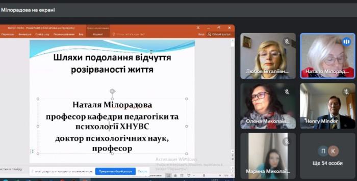Професорка виступила з доповіддю на тему «Шляхи подолання відчуття розірваності життя». Вона акцентувала увагу на тому, що невід’ємною складовою повернення якості життя є розвиток навичок відновлення та поповнення особистісних ресурсів. Наталя Мілорадова зазначила, що прожити травмовані події, повернути собі відчуття безпеки та контролю можливо за умови зниження рівня опору реальності, тобто необхідно підпорядкувати своє життя принципу «тут і зараз». Під час виступу розглянула типи безперервностей та шляхи їх відновлення задля подолання відчуття розірваності життя.
