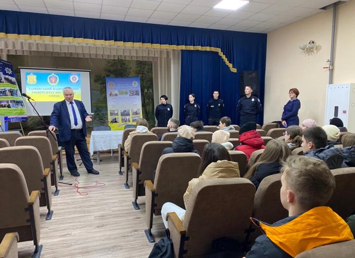 Представники університету ознайомили присутніх з історією університету, його відомими випускниками, цьогорічними умовами вступу як за державним замовленням, так і за кошти юридичних і фізичних осіб, перспективами майбутнього працевлаштування. Для абітурієнтів у презентаційному форматі було докладно наведено покроковий алгоритм дій абітурієнта при вступі до закладу вищої освіти. У профорієнтаційному заході взяли участь більше 50 учнів. Курсанти поспілкувалися з випускниками шкіл, розповіли їм про навчання та службу, а також поділилися власним досвідом вступу до вишу.
