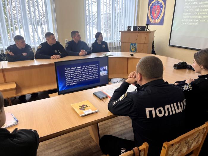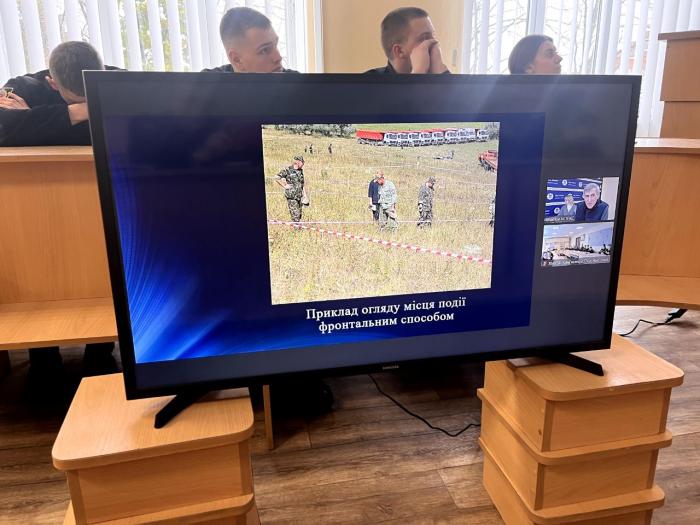 Доцентом кафедри криміналістики, судової експертології та домедичної підготовки факультету №1 Василем Корнієнком було проведено бінарне заняття з криміналістики для курсантів 3 курсу на тему «Особливості роботи зі слідами кримінальних правопорушень на місці події».