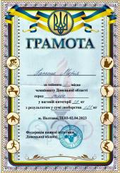 Курсантка 2 курсу факультету №4 Харківського національного університету внутрішніх справ Марія Пальона здобула першість серед жінок у ваговій категорії 59 кг із загальним результатом двоборства 121 кг у чемпіонаті Донецької області з важкої атлетики.