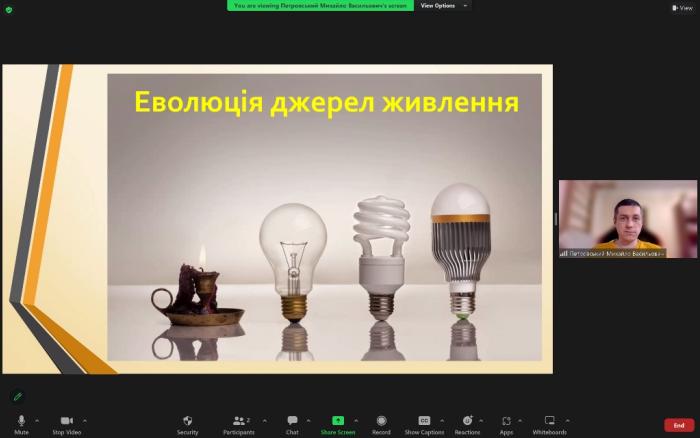 У межах вивчення теми «Основи фізіології та гігієни праці» він прочитав лекцію на тему «Енергоефективні джерела штучного освітлення». Михайло Васильович розповів студентам про існуючі джерела штучного освітлення, їх еволюцію, переваги та недоліки кожного виду. Авторська презентація забезпечила наочність сприйняття викладеного матеріалу студентами. Тема заняття виявилася цікавою та викликала жваву дискусію і запитання від студентів.