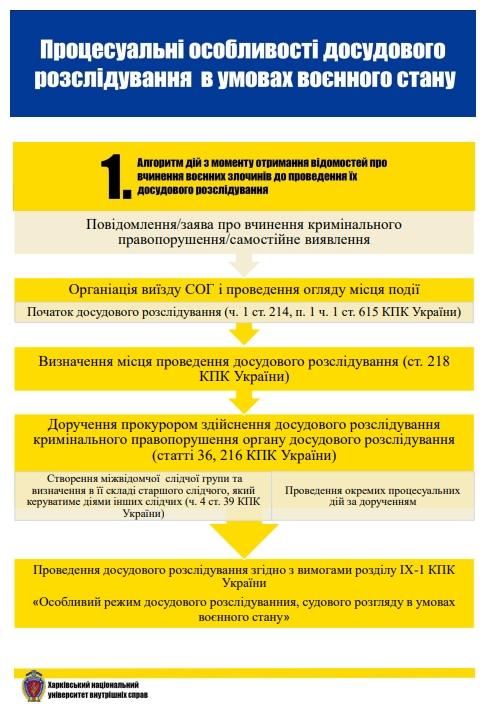 У Пам’ятці використано інструменти візуалізації, розкрито основні положення міжнародного гуманітарного права у їх специфікації до потреб кваліфікації, документування та розслідування воєнних злочинів, і пов’язаних зі збройною агресією РФ кримінальних правопорушень, визначено процесуальні особливості здійснення досудового розслідування в умовах воєнного стану та наведено рекомендації щодо призначення відповідних судових експертиз.