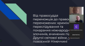 Професор кафедри конституційного і міжнародного права факультету №4 Андрій Войціховський взяв участь у тематичній онлайн-лекції професора кафедри кримінально-правової політики та кримінального права Київського національного університету імені Тараса Шевченка, експерта Центру громадянських свобод, кандидата юридичних наук, доцента Костянтина Задоя на тему «Від правосуддя переможців до правосуддя переможених: покарання за злочини Другої світової війни», проведеного Center for Civil Liberties / Центром громадянських свобод.