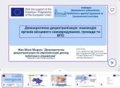 Під час презентації модераторами були розкриті питання розвитку механізмів та інструментів локальної демократії в Україні на підставі європейського досвіду шляхом реалізації освітнього проєкту «Локальна демократія: кращі європейські практики для України» через розроблений навчальний курс, який охоплює різнобічну тематику щодо інструментів локальної демократії, які використовуються в країнах ЄС, та освітнього проєкту «Демократична децентралізація як європейський досвід публічного управління».