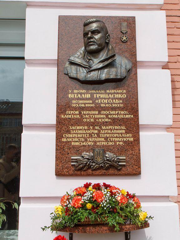 Віталій Грицаєнко (позивний «Гоголь») у перші дні повномасштабного вторгнення РФ боронив місто Маріуполь, зі своєю групою він відбив чотири спроби висадки морського десанту ворога, завдавши йому суттєвих втрат. Підрозділ героя повністю розбив ворожу колонну, яка намагалася прорватися у місто. У середині березня старший лейтенант Грицаєнко та його побратими успішно заблокували пересування ворога. Він особисто знищив дві бойові бронемашини «Тигр». У ніч 19 березня 2022 року група військовослужбовців окремого загону спеціального призначення «Азов», до складу якої входив старший лейтенант Грицаєнко, здійснила успішний рейд у тил противника. Було знищено ворожий командний пункт, тиловий склад і склад із боєприпасами, танк, два БТР та близько взводу живої сили ворога. Але, на жаль, під час виконання бойового завдання він загинув від тяжких поранень.