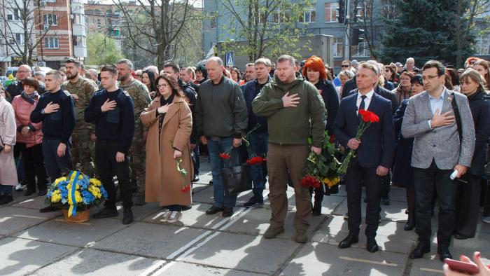 Від імені ректора університету генерала поліції третього рангу Валерія Сокуренка та колективу вишу з промовою виступив завідувач науково-дослідної лабораторії з проблем психологічного забезпечення правоохоронної діяльності підполковник поліції Олексій Сердюк. Відбулося покладання квітів за участі представників Кременчуцького льотного коледжу та курсантів усіх факультетів університету.