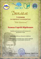 Нагадаємо, що студенти факультету №6 взяли участь у Всеукраїнському конкурсі есе «Мій Шевченко», за результатами якого диплом І ступеня отримав студент 1 курсу Сергій Хижка за перемогу у категорії «Заклади вищої освіти», студентка 1 курсу Катерина Жмуровська перемогла у номінації «Історіософський огляд творчості Кобзаря». Роботи виконувалися під науковим керівництвом кандидатки філологічних наук, доцентки кафедри соціально-гуманітарних дисциплін факультету №6 Наталії Кобилко.