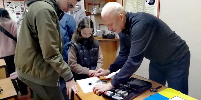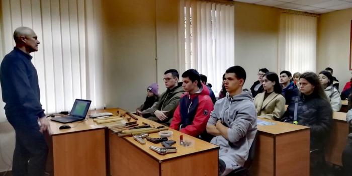 Досвідчений криміналіст, діючий адвокат, старший викладач кафедри юридичних дисциплін Віктор Кисельов ознайомив школярів з особливостями криміналістичної техніки, видами холодної та вогнепальної зброї, зі специфікою інструментарію при розслідуванні різного роду злочинів. Школярі отримали можливість перевірити справжність грошових купюр і документів, зробити відбитки пальців, ознайомитися з різними видами вогнепальної та холодної зброї та поставити багато запитань.