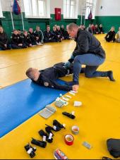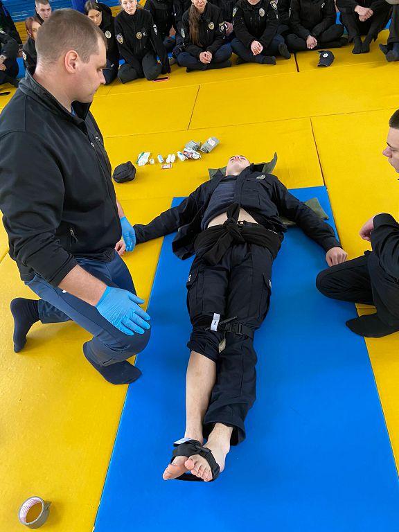 Під час занять розглядалися питання щодо вдосконалення навичок надання тактичної допомоги пораненому безпосередньо під обстрілом (червона зона), а також самодопомоги під час поранення. Відпрацьовувалися навички з надання допомоги пораненому в укритті (помаранчева зона) згідно алгоритму MARCH. Вивчені нормативні документи, що регламентують питання надання невідкладної медичної допомоги поліцейськими в умовах воєнного стану.