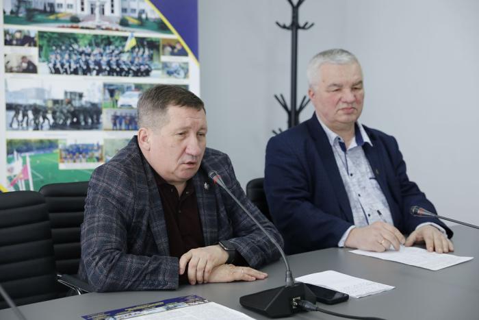 Проректор університету Анатолій Клочко та помічник ректора Віктор Слиш ознайомили потенційних абітурієнтів з історією вишу, його відомими випускниками та перевагами навчання у Харківському національному університеті внутрішніх справ. Розповіли про наукові, спортивні, культурні досягнення університету.