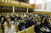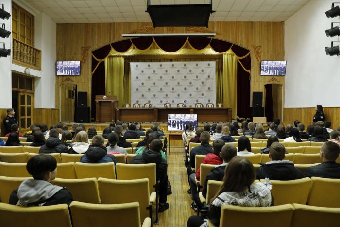 Кадетів від імені ректора ХНУВС Валерія Сокуренка привітав проректор університету Анатолій Клочко й побажав вдалого та продуктивного дня. Щодо подальшого процесу навчання з кадетами поспілкувався начальник сектору організації відбору УКЗ ГУНП у Вінницькій області Олександр Замура.