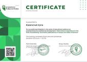 Після завершення навчання Ірина Казанчук отримала сертифікат щодо підвищення кваліфікації в публікаційній сфері на 1 кредит ECTS (30 годин). Набуті знання стануть у нагоді у подальшій професійній діяльності.