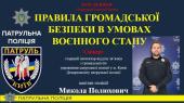 Поліцейський розповів про структуру Національної поліції України та завдання основних її підрозділів. Він докладно зупинився на правилах громадської безпеки в умовах воєнного стану й особливу увагу приділив адміністративним та кримінальним правопорушенням у сфері громадської безпеки, з якими стикаються поліцейські у своїй роботі: дрібне хуліганство (ст. 173 КУпАП); вчинення домашнього насильства (ст. 173-2 КУпАП); булінг (цькування) учасника освітнього процесу (ст. 173-4 КУпАП); куріння тютюнових виробів (ст. 175-1 КУпАП); розпивання алкоголю (ст. 178 КУпАП); порушення вимог додержання тиші (ст. 182 КУпАП); неправдивий виклик спецслужб (ст. 183 КУпАП); невиконання батьківських обов’язків (ст. 184 КУпАП).