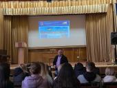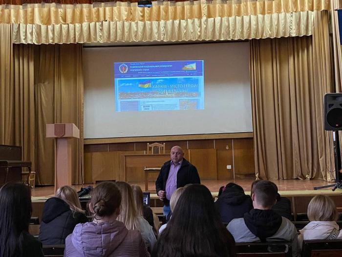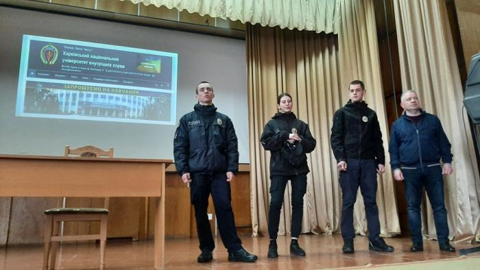 Заступник декана з навчально-методичної роботи Григорій Джагупов, доцент кафедри педагогіки та психології Павло Червоний, магістри та курсанти факультету № 3 зустрілися із заступником директора з навчально-виробничої роботи Вінницького медичного фахового коледжу ім. академіка Д. К. Заболотного Інною Сірак та провели профорієнтаційну зустріч. Випускникам отримали інформацію про спеціальності, за якими здійснюється набір кандидатів на навчання. Зосередили увагу на особливостях навчання саме на факультеті № 3, який здійснює підготовку поліцейських за спеціальностями «Психологія» та «Правоохоронна діяльність». Під час заходу студентам продемонстрували слайди щодо вступу до ХНУВС та відеоролик «Мрієш стати психологом? Вступай до ХНУВС!». Також студентам коледжу надали інформацію щодо зворотного зв’язку з кожним факультетом Харківського поліцейського вишу. У зустрічі взяли участь понад 60 студентів.