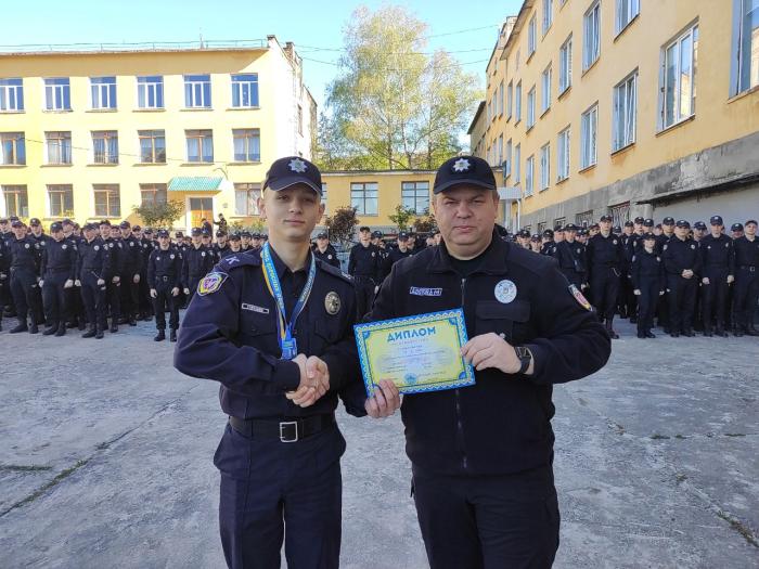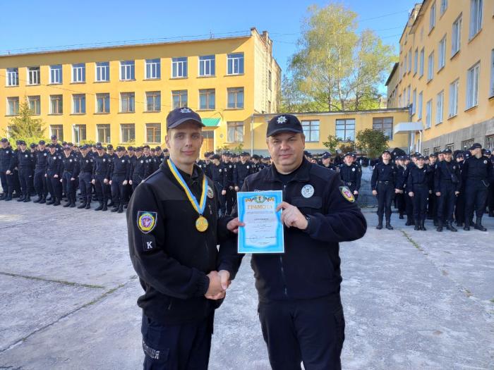 Під час ранкового шикування особового складу факультету №1 Харківського національного університету внутрішніх справ відбулося нагородження курсантів університету, які вибороли призові місця у змаганнях з різних видів спорту. Грамоти та медалі декан факультету №1 Віталій Романюк вручив: