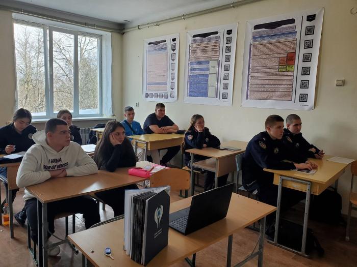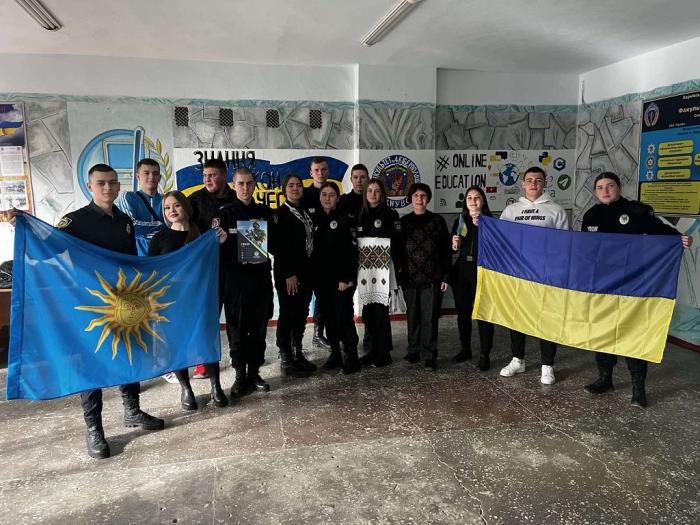 Старша викладачка кафедри іноземних мов факультету № 4 кураторка групи першого курсу факультету № 4 Лариса Сазанова провела патріотично-виховну бесіду «Якщо ти українець – будь ним!». Курсанти обговорили історичне минуле України, традиції, звичаї та цінності українського народу, трагічні події сьогодення та вклонилися Героям України – незламним патріотам Батьківщини, професійним військовим та цивільним жителям. Особливу увагу було приділено матеріалу книги «Герої МВС». Курсанти переглянули фотографії та інформацію про справжніх захисників України, обговорювали також пісні, фільми та неологізми, які стали популярними під час російської агресії. Курсанти висловили упевненість у перемозі України та зробили патріотичне фото з прапором України та прапором Кам’янець-Подільського району Хмельницької області.