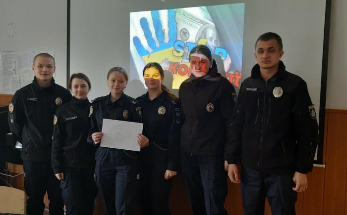Спілкування містило елементи квесту. Здобувачі змоделювали ситуаційну гру, де кожен учасник вирішував конкретне завдання щодо корупційного правопорушення, зокрема спробували скласти протокол про адміністративне порушення, а також знайти уявного хабарника. Наприкінці заняття курсанти спробували уявити Україну майбутнього, якщо припинити боротьбу з цим ганебним явищем, а також висловились із приводу того, що кожен із них може зробити, щоб цього не сталося.