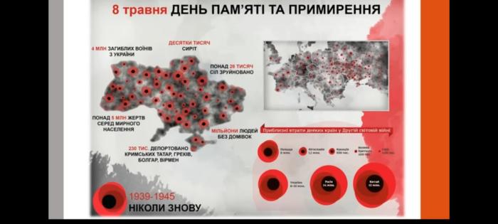 Куратори навчальних груп факультету №6 Харківського національного університету внутрішніх справ провели інформаційні онлайн-зустрічі зі студентами до Дня пам’яті та примирення, що відзначається щороку 8 травня з метою вшанування пам’яті кожного, хто боровся з нацизмом, та всіх жертв Другої світової війни 1939-1945 років. Вони розповіли про ті трагічні події, які відбулись під час Другої світової війни, із демонстрацією документальних відеоматеріалів тих часів.