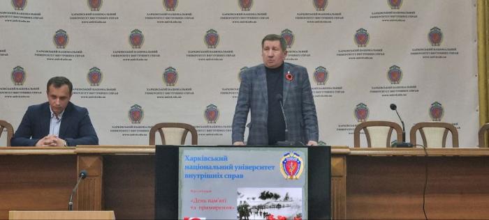 Для здобувачів вищої освіти Харківського національного університету внутрішніх справ проведено відеолекторій з нагоди пам’ятних подій, до яких причетні старші покоління практично всіх українських родин. На початку заходу до присутніх звернувся проректор університету Анатолій Клочко.