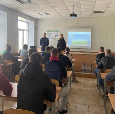Курсант факультету № 4 Денис Воєвода разом з інспектором сектору ювенальної превенції Гайсинського районного управління поліції ГУНП Вінницької області Галиною Подолян відвідали Теплицький професійний аграрний ліцей та Теплицьку ЗОШ № 2, де провели профорієнтаційну зустріч із випускниками навчальних закладів. Майбутні вступники дізналися про цьогорічні умови вступу як за державним замовленням, так і за кошти юридичних і фізичних осіб, про перспективи подальшого працевлаштування. Для старшокласників у презентаційному форматі було докладно наведено покроковий алгоритм дій абітурієнта при вступі до закладу вищої освіти. Представники поліції поспілкувалися з випускниками, розповіли їм про навчання та службу, а також поділилися власним досвідом вступу до вишу. Учні ставили багато запитань та отримали вичерпні відповіді. Керівництву навчального закладу та майбутнім абітурієнтам було надано друковану інформаційну продукцію про ХНУВС.